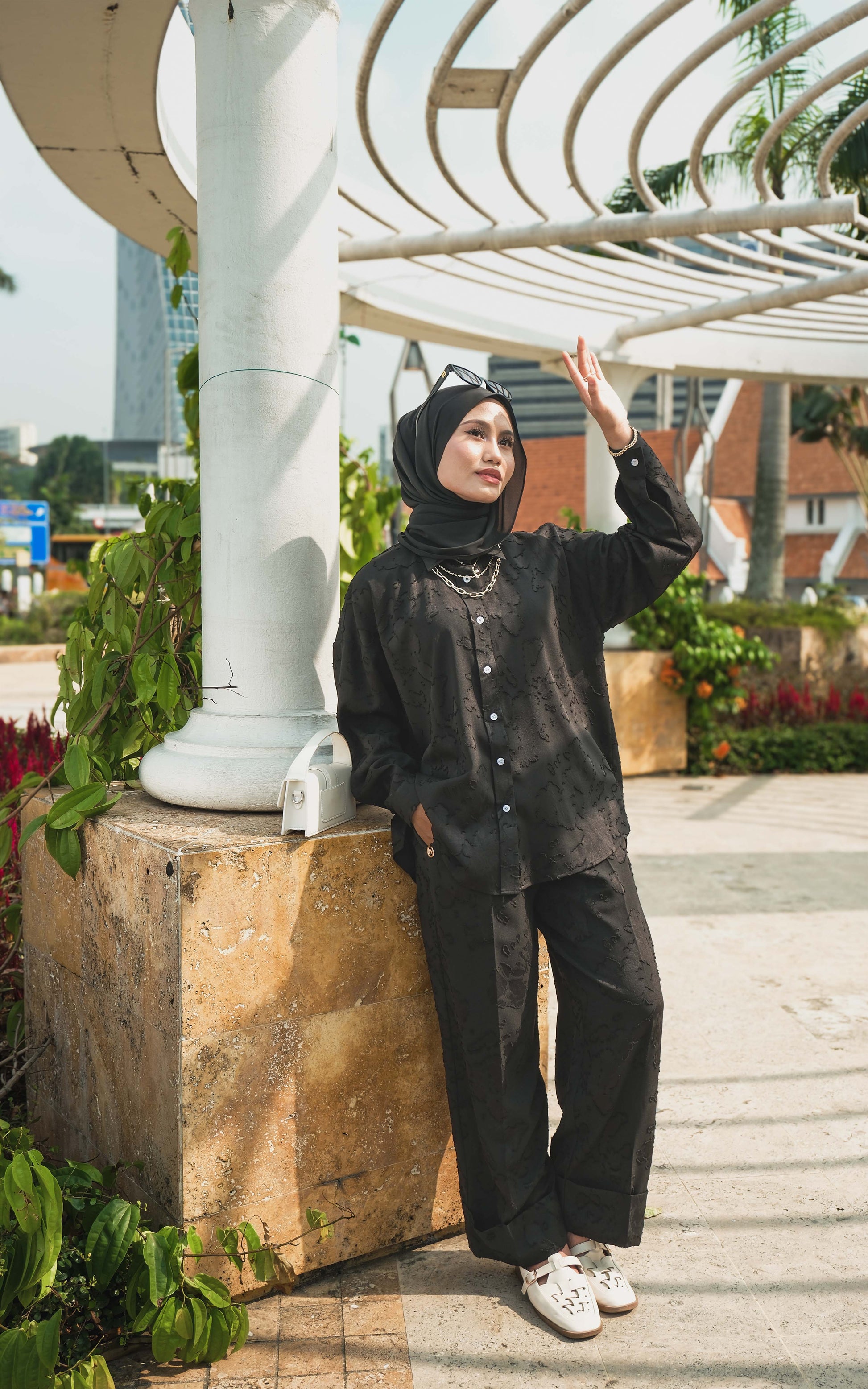 - Wide bottom hem enhances structure and timeless style