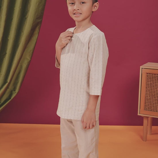 Let your child's spirit shine in the DZAHAR STRIPED KIDS KURTA—where tradition meets irresistible charm! Crafted from breathable stripe linen, this kurta is designed for all-day comfort and style, letting kids move freely and confidently.